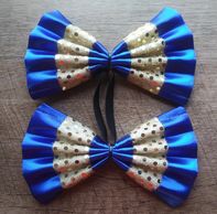 These tail bow is sequin with a ribbon border. Shown in royal and black.