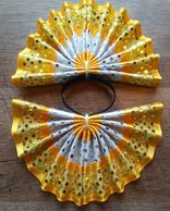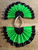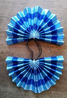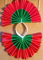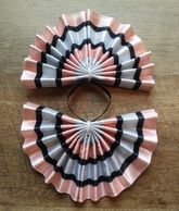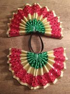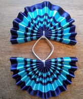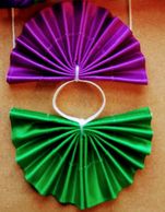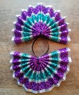 Fan tail bows are constructed of a vinyl material and each strip of ribbon is sewn on individually.