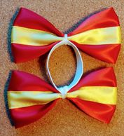 These tail bows are a solid color with no trim. Great for those who don't want a lot of color. Each half can be a different color if desired. Also available in sequin and lame material.